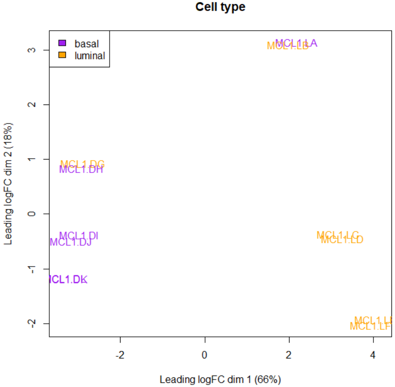 > col.cell <- c("purple","orange")[sampleinfo$CellType]